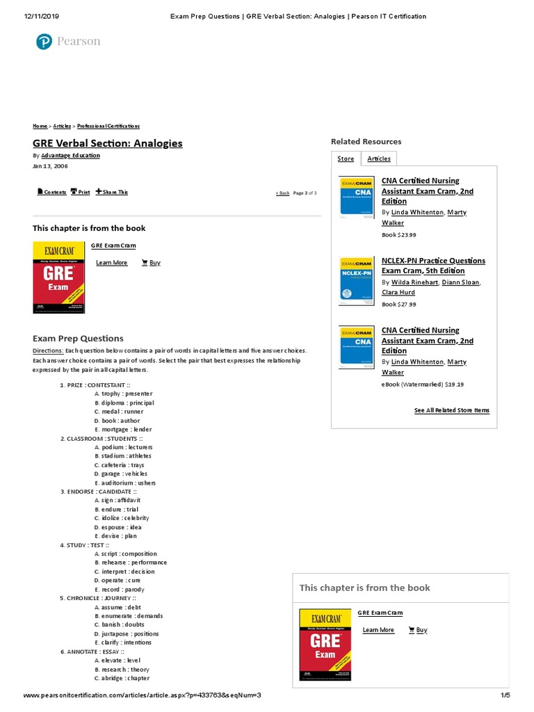 Exam Prep Questions Gre Verbal Section Analogies Pearson It