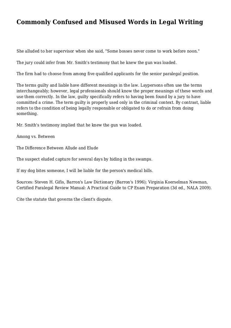 Commonly Confused And Misused Words In Legal Writing